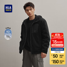 HLA海澜之家羽绒服男极光鹅绒石墨烯连帽工装风外套男 黑色F5 M