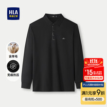 海澜之家(HLA)POLO衫男25新款高周波印花翻领弹力长袖秋季 黑色26 M 170/88A 推荐125~136斤