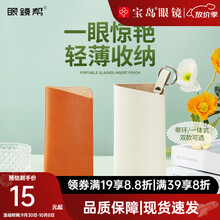 眼镜帮 眼镜盒收纳包感便携女墨镜盒太阳镜眼镜挂包皮革眼镜袋 棕色(环扣款)+眼镜布一块
