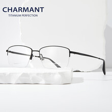 夏蒙(Charmant)商务系列近视眼镜男简约半框镜架钛合金镜腿近视眼镜框男眼镜近视 CH29537-56-BK 黑色 仅镜框