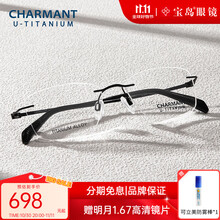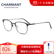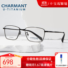 夏蒙(Charmant)优值钛系列近视眼镜男可配防蓝光眼镜近视可配度数眼镜框柔和方框 CH38503-BK-黑色 赠明月1.67绿膜镜片