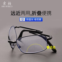 索柏防蓝光老花镜男 双光远近两用老年男款可折叠便携老人眼镜3105 300度(建议年龄65-69岁)