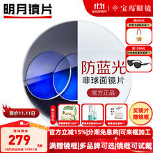 明月防蓝光镜片2片装 双重防蓝光非球面镜片 近视眼镜线上配镜片 1.56折射率(较薄) 现片库存非球面