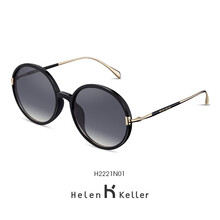 海伦凯勒墨镜女太阳镜复古圆框优雅时尚高级感墨镜出游好搭眼镜H2221 N01亮黑框+渐进断层灰片