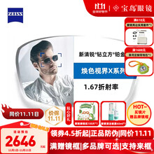 蔡司(ZEISS)变色镜片2片装 新清锐钻立方铂金膜焕色视界X 室内室外快速变色 1.67折射率变深灰