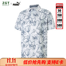 彪马(PUMA)高尔夫服装PTC FLORAL时尚休闲舒适男士短袖T恤POLO衫 2024新款 62593901 白色/藏青 S