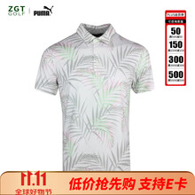 彪马(PUMA)高尔夫服装 Cloudspun Palm Leaf男士T恤短袖翻领POLO 53745301 白色/绿色 XS