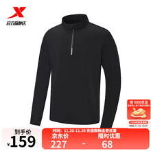 特步门店同款长袖T恤男2025秋新款运动跑步休闲立领卫衣975329030084 正黑色 S