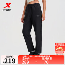 特步门店同款针织长裤女裤25秋季平口学生通勤运动休闲裤975328630169 正黑色 S