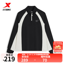 特步门店同款卫衣女士2025秋半拉链撞色潮流套头衫975328920187 正黑色/雨蒙白 S