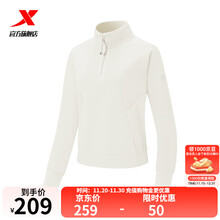 特步门店同款长袖T恤女2025年新款训练服半拉链运动上衣975328920123 棉花白 M