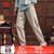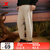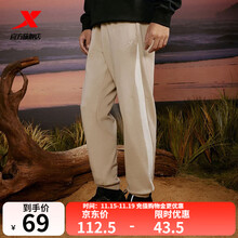 特步男运动长裤秋冬新款宽松休闲束脚裤加绒针织长裤男裤卫裤 浅亚麻/棉花白-加绒 M