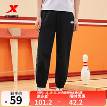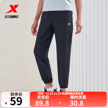 特步【门店同款】运动裤女小脚卫裤秋冬训练针织运动长裤977428630208 正黑色 XS