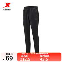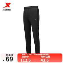 特步门店同款运动裤秋冬新款束脚针织长裤百搭男裤977429630769 正黑色 S