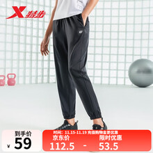 特步(XTEP)运动裤女夏季新款舒适透气跑步梭织运动长裤女 正黑色 S