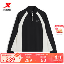 特步门店同款卫衣女士2025秋半拉链撞色潮流套头衫975328920187 正黑色/雨蒙白 S