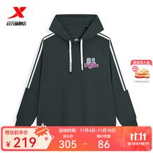 特步(XTEP)钜惠运动套头卫衣情侣百搭新款学生上衣男子上衣裤子潮流运动裤 正黑色-0128(加绒-男) L