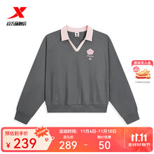 特步门店同款2025早秋新品休闲圆领太阳花胸针女上衣卫衣975328920340 暴雨灰/芭蕾粉 S