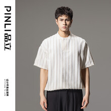 品立(PINLI)短袖T恤男条纹夏季新款男装潮牌宽松男士半袖体恤男 白色 2XL 185