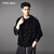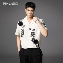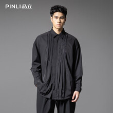 品立(PINLI)衬衣男长袖2025秋季新款男装潮牌原创亮片绣宽松男士衬衫 黑色 L (175)