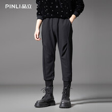 品立(PINLI)休闲裤男2025秋冬新款男装潮牌提花高罗纹束脚裤男士长裤子男 黑色 L