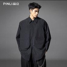 品立(PINLI)衬衫男长袖2025秋季新款男装潮牌宽松休闲男士衬衣外套 黑色 XL (180)