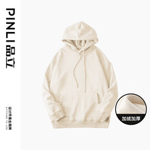 品立(PINLI)卫衣男连帽加绒加厚秋冬款纯色百搭男士休闲长袖上衣 杏色 3XL 190