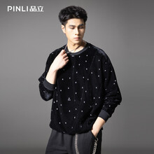 品立(PINLI)卫衣男春秋季男装潮流原创烫钻休闲圆领男士长袖上衣 黑色 L 175