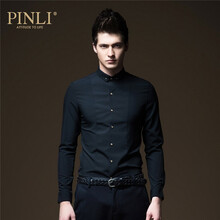 PINLI品立男装衬衫男长袖商务休闲免烫抗皱百搭弹力男士衬衣 黑色 3XL 190
