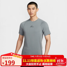 耐克NIKE男子短袖T恤 针织无领 运动休闲 简约时尚DO7393-074黑/灰 M