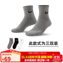 耐克NIKE男女运动袜 速干透气篮球袜 短袜三双装SX7677-964黑/灰 M