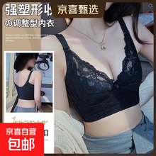 调整型大胸显小内衣夏季薄款女聚拢矫正蕾丝文胸收副乳防下垂胸罩 黑色 90C