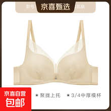 奥丽侬大胸显小内衣女U型美背性感胸罩聚拢收副乳防下垂文胸薄款 香槟肤 80C
