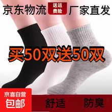 一次性袜子100双夏天薄款男士透气中筒短船袜吸汗日抛运动袜11 【50双】享受50天免洗的滋味 中筒袜【黑色+白色】