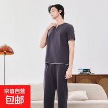 睡衣男士夏季莫代尔薄款短袖长裤开衫冰丝凉感青少年家居服可外穿 QGL23004 2XL