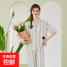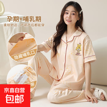 孕妇月子服纯棉睡衣女夏季怀孕期短袖长裤大码开衫产后喂奶家居服 HDE6918 2XL