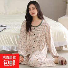 春秋季女士温婉小碎花洋气开衫睡衣舒适纯棉可外穿长袖长裤家居服 Y-70019 XL