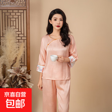 高级感冰丝睡衣女春秋冬季中式国风套装仿真丝缎面套头提花居家服 橙色 M