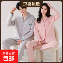 抗菌纯棉睡衣拉架爽棉情侣睡衣春秋季休闲男女家居服 【Y28002女樱粉-Y29002男浅银】 XL 男 (168-175cm,135-160斤)
