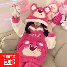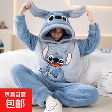 冬季睡衣男加厚珊瑚绒加肥大码200斤青少年法兰绒连帽外穿家居服 8885史迪仔 XL
