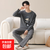 睡衣男春秋款纯棉长袖高档提花秋冬季2025新款休闲大码家居服套装 Z11018墨绿灰 M 推荐体重100-120斤
