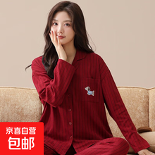 纯棉情侣睡衣秋季长袖长裤红色条纹结婚新婚喜庆男女士家居服套装 CKE-FY8109女 L