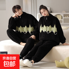 加厚珊瑚绒情侣睡衣女冬季新款长袖加绒拉链款家居服男士保暖套装 【J8191女绒 J8192男绒】 2XL 男 (175-183cm,150-180斤)