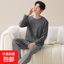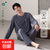 男士睡衣男款假两件纯棉秋冬季长袖长裤纯色休闲可外穿家居服套装 CKE-W1202男 L