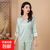 纯棉纱布情侣睡衣女开衫新款春秋纯棉长袖长裤男士简约家居服套装 【XX-129009】纯色浅绿女款 2XL 【推荐140-160斤穿】