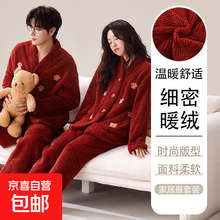 保暖珊瑚绒情侣睡衣女冬季甜美可爱开衫加绒加厚男女士家居服套装 【J61093女 J61094男】情侣和服暖绒套装 L 女 (155-165cm,95-115斤)