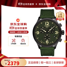 天梭(TISSOT)瑞士手表 速驰系列石英男表计时运动防水男士手表 送男友礼物 织物绿盘T116.617.37.097.00
