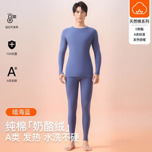 恒源祥男士保暖内衣套装冬季加绒10a级抗菌棉舒适内穿秋衣秋裤 暗海蓝 L (适合120-140斤)