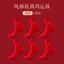恒源祥本命年袜子男棉大红色中筒袜女结婚喜福字礼物长袜属马年 【大吉大利】6双福袜男 均码 均码【鸿运本命年大红色】