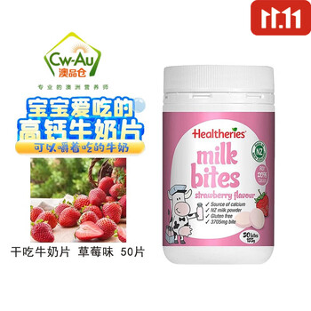 贺寿利(Healtheries) 新西兰成人中老年青少年学生羊奶粉 450g 奶片 草莓味 50粒/瓶